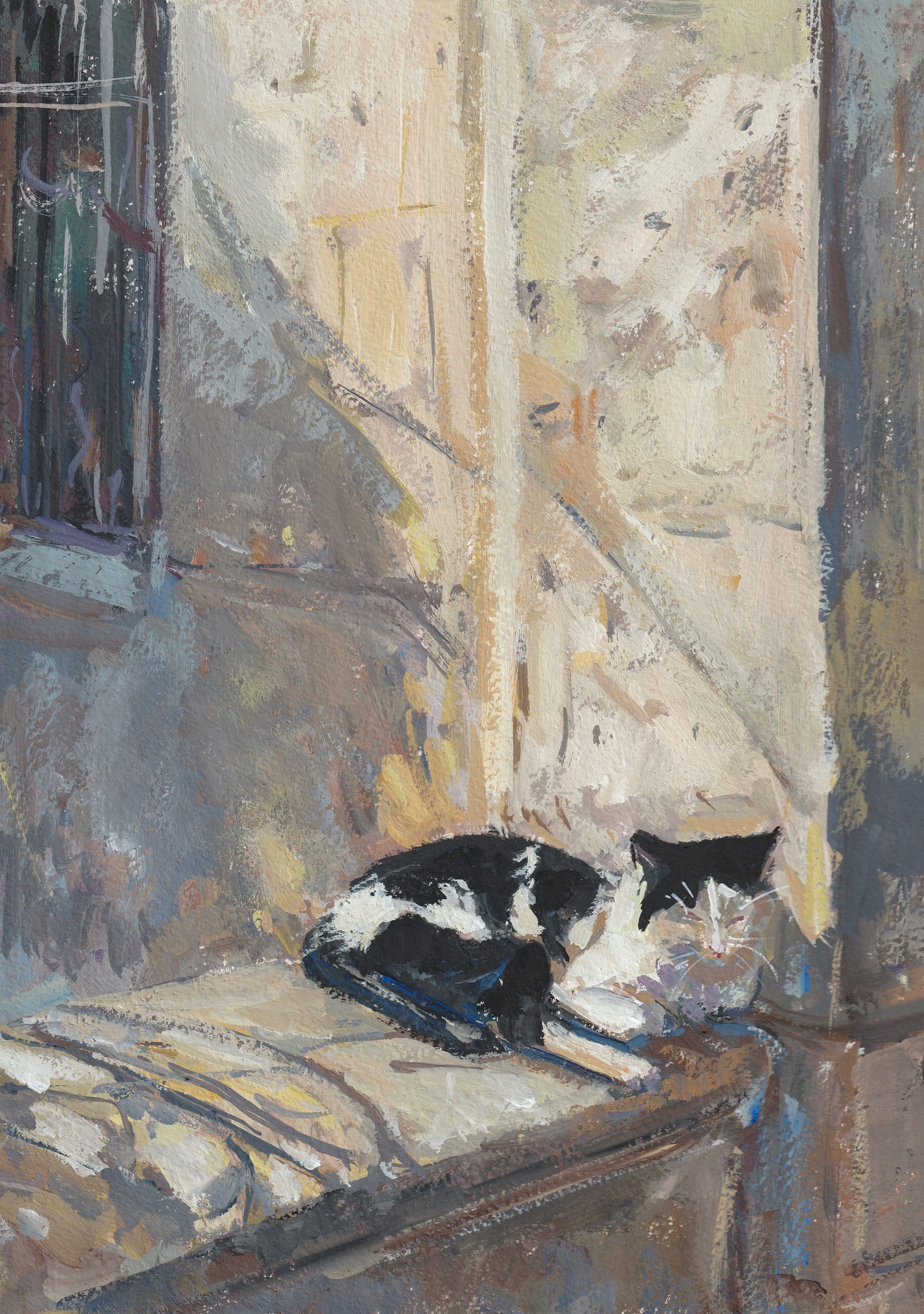 "Сон котика" бумага, гуашь 30х21см, 2025
